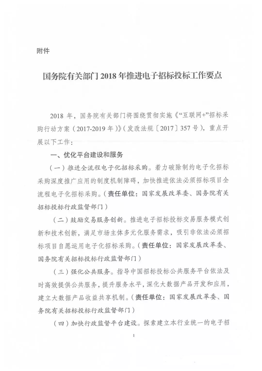 关于印发《国务院有关部门2018年推进电子招标投标工作要点》的通知
