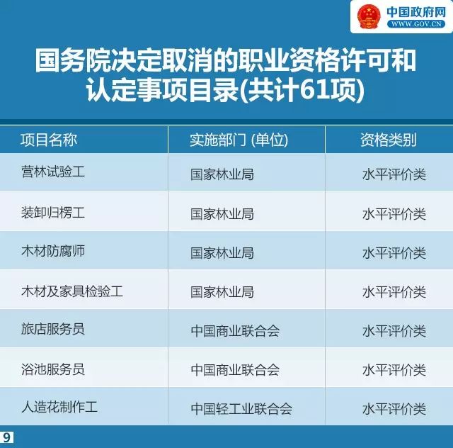 第五批取消的61项职业资格许可和认定事项 前四批取消的211项职业资格许可和认定事项