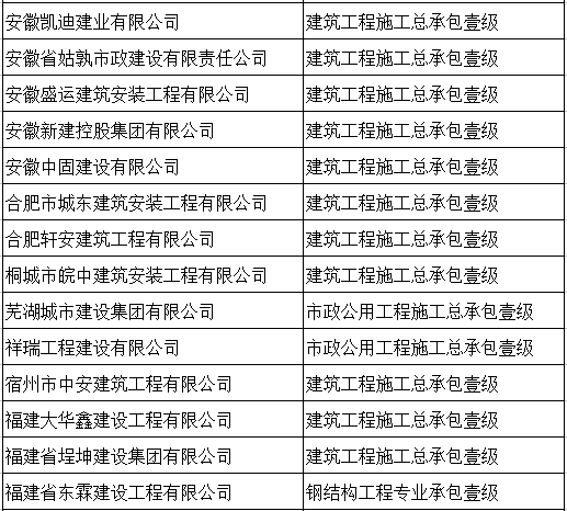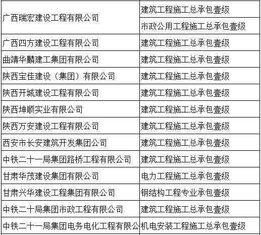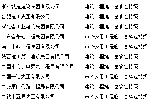 二、21家建筑企业升为特级资质,117家建筑企业升为一级资质